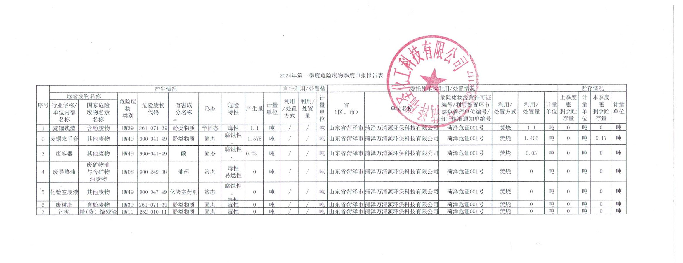 危險廢物申報報告表